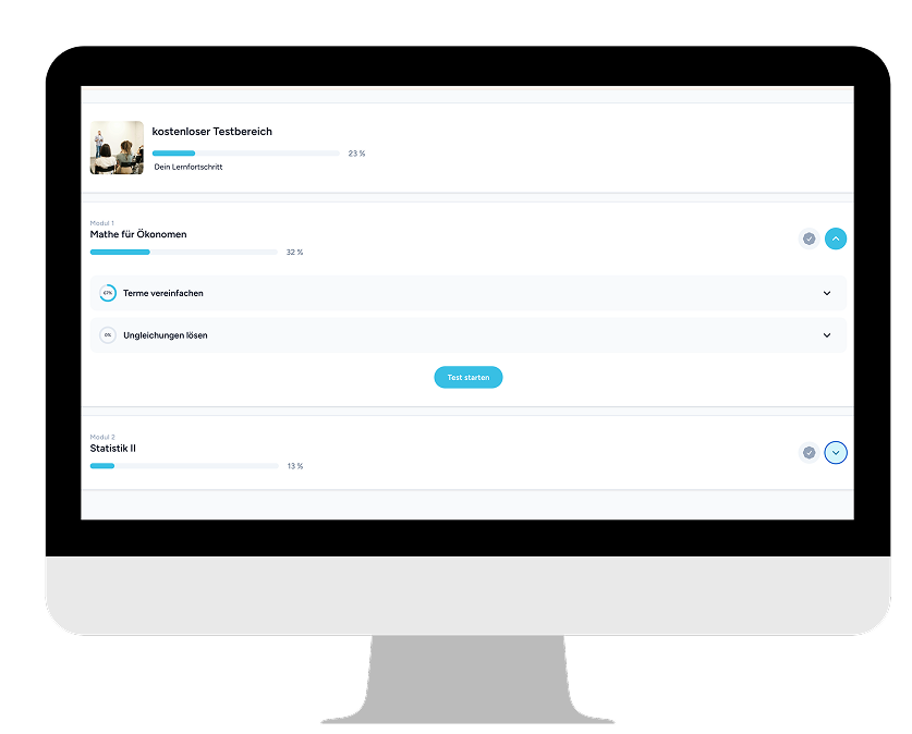 Mit unserem Kurs hast du die Möglichkeit nahezu unbegrenzt viele modulspezifische Aufgaben in deinem Lerntempo zu lösen.